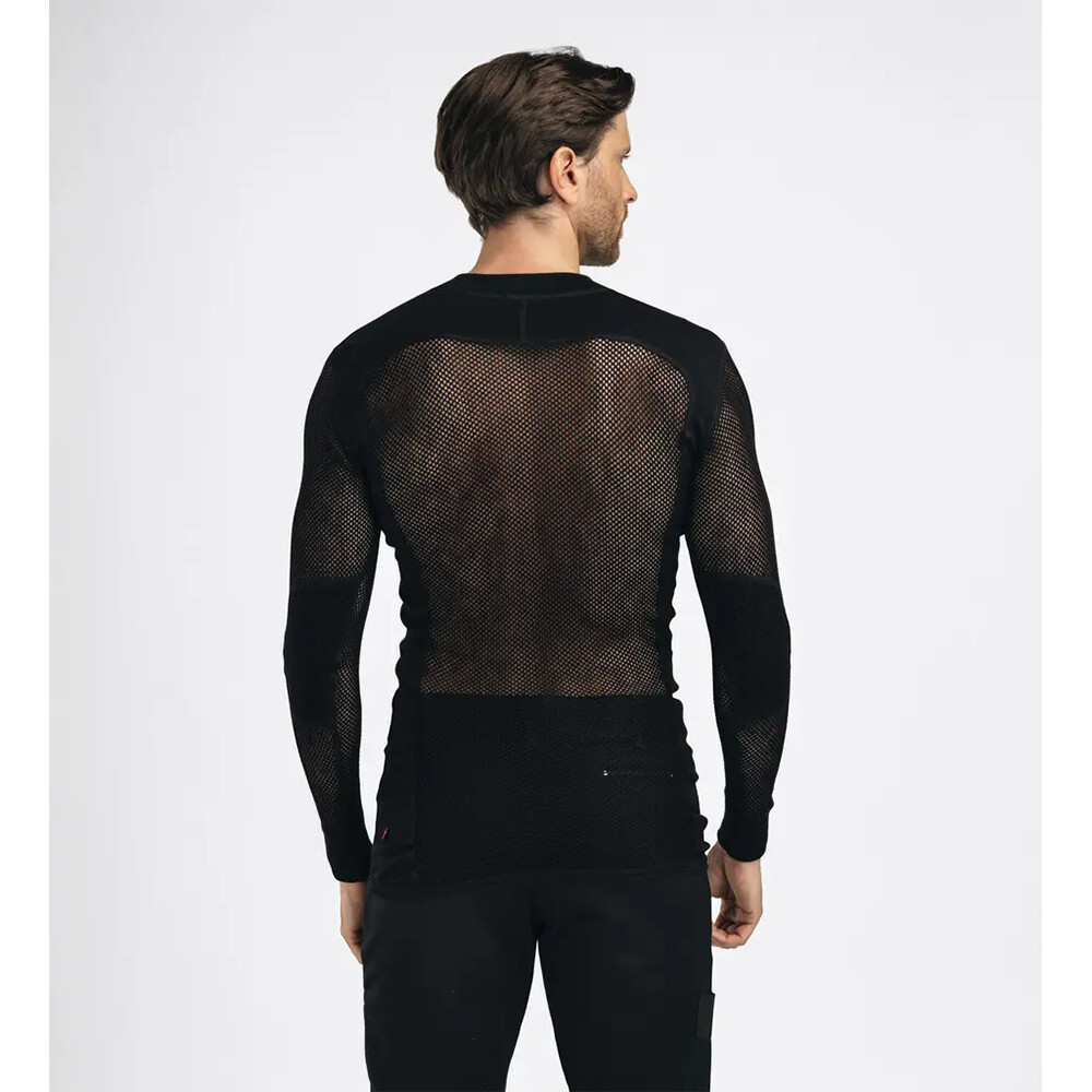 Síťované triko WoolNet Crewneck Men s kulatým výstřihem a dlouhým rukávem disponuje výztuhami na loktech a žebrovaným úpletem na ramenech, který chrání před nepohodlím z ramenních popruhů batohu a celkovým opotřebením. Triko je vhodné pro všechny činnosti s vysokou úrovní aktivity, od alpské turistiky v zimě, dlouhých horských túr, přes náročné i méně nenáročné přechody a expedice až po lov či rybaření.