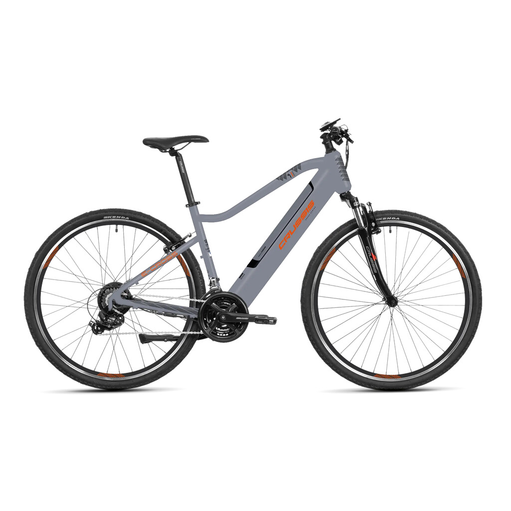 Pokud hledáte e-kolo pro sportovnější jízdu nebo výlet, jste na správné adrese. Krosové elektrokolo e-Cross 1.9-(612 Wh) se silnější baterií je totiž určené nejen pro výlety všeho druhu na silnicích a cyklostezkách, ale zvládne také sportovnější ježdění v lehkém terénu. Již se nemusíte bát kopcovitého profilu výletu. Naopak! Do trati se můžete pustit s vervou sobě vlastní. Je čas vyrazit! Není nač čekat. E-bike Crussis E-Cross 1.9-(612 Wh) je připraven pro váš parádní výlet. Šlápněte do pedálů! Pokud byste přesto zatoužili po modelu se středovým elektromotorem a lepší doplňkovou výbavou (vidlice, přehazovačka, motor…), koukněte na e-kolo e-Cross 7.10.