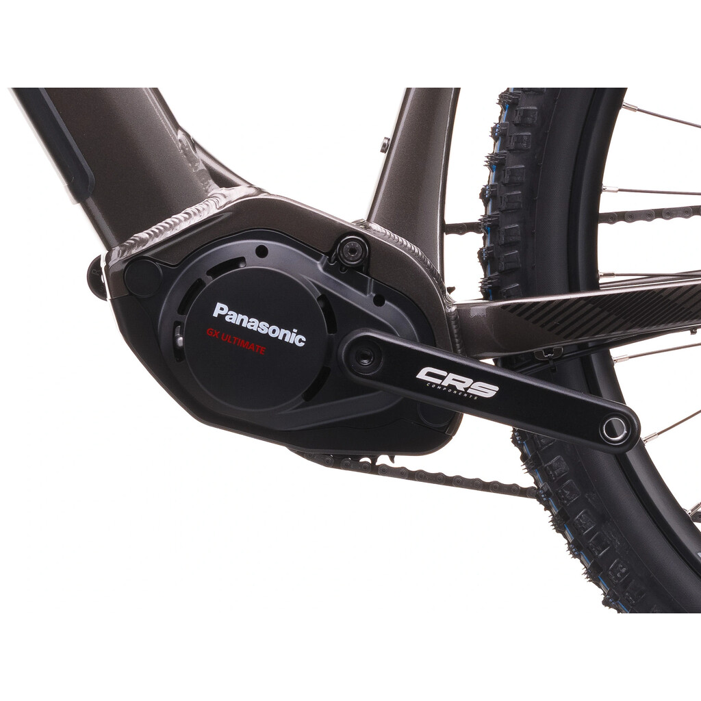 O pohon se stará motor PANASONIC GX Ultimate (250 W, MAX 500 W, 95 Nm), který poskytuje rovnoměrný a tichý výkon, díky němuž je snazší překonávat strmé stoupání a kamenité úseky. Energii dodává baterie LG Li-Ion 715 Wh (19,88 Ah), dostatečná pro delší vyjížďky a náročnější horské trasy. Je připravená vás dovézt až 170 km na jedno nabití.