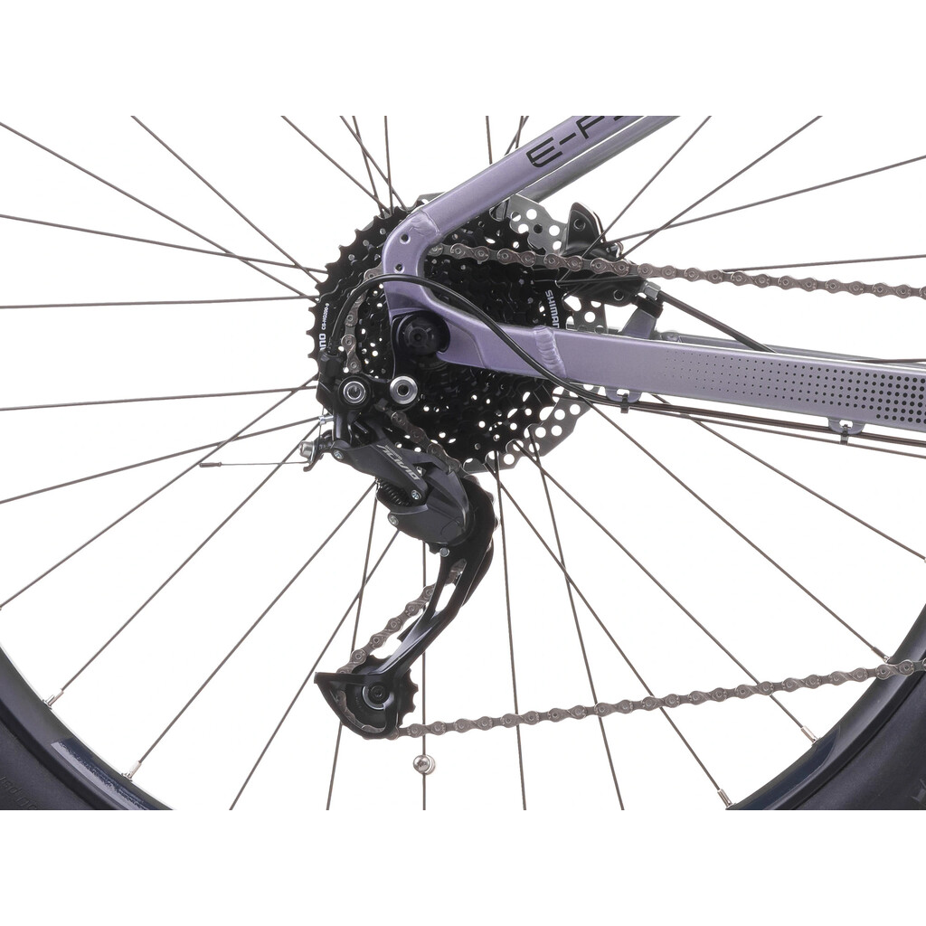 Přesné řazení zajišťuje sada SHIMANO Alivio s 9 převody, která zvládne svižné rovinky i prudká stoupání. Nechybí ani barevný LCD displej PANASONIC, který přehledně zobrazí vše od stavu baterie po aktuální rychlost.