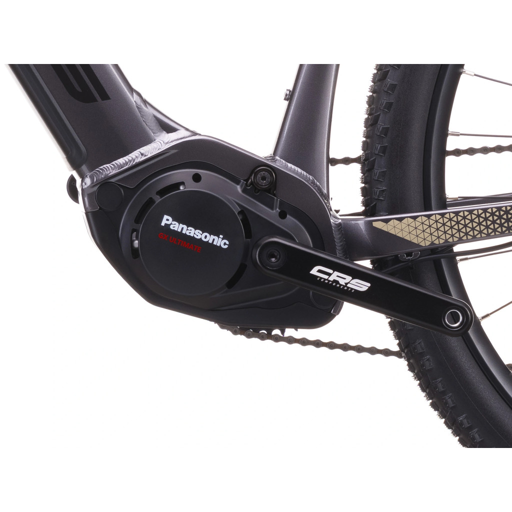 Hnacím srdcem e-biku je středový motor PANASONIC GX Ultimate s krouticím momentem 95 Nm. Díky tomu zvládneš prudká stoupání i technické pasáže s lehkostí, bez přepínání do nižších převodů každých pár metrů.