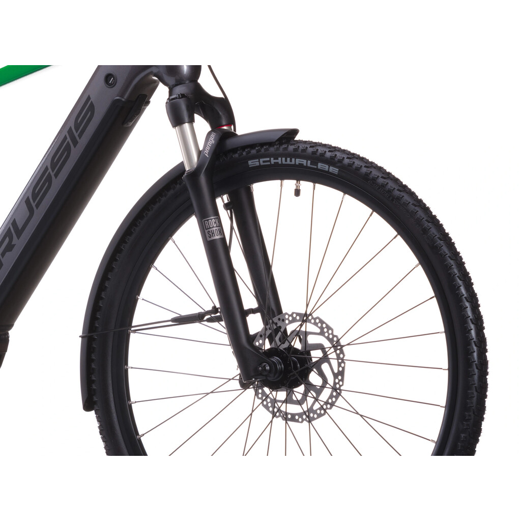 Díky integrované baterii v rámu je elektrokolo perfektně vyvážené a má nízké těžiště, což zlepšuje ovladatelnost a stabilitu. O komfort při jízdě se stará vzduchová vidlice ROCKSHOX FS Paragon Gold RL Solo Air 700C (zdvih 65 mm), která spolehlivě eliminuje nerovnosti na silnici i v lehkém terénu.