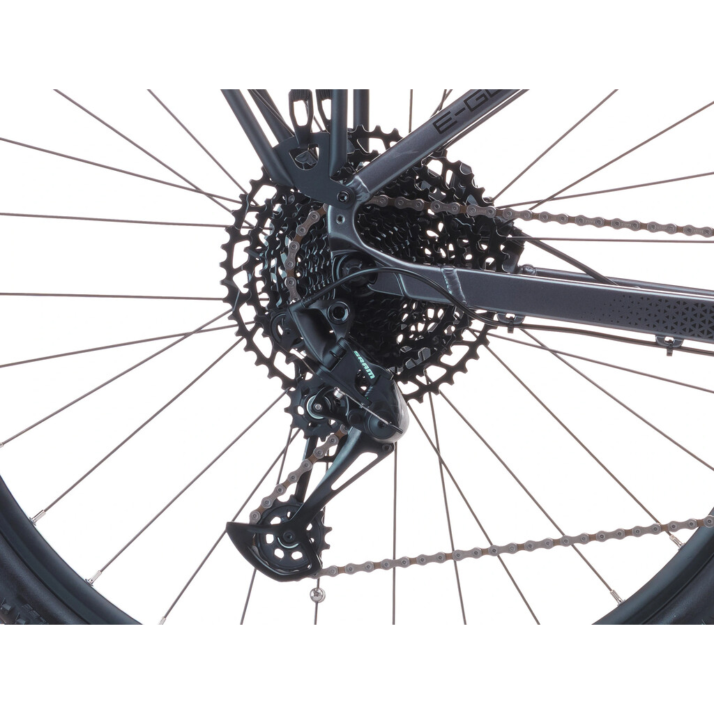 Řazení obstarává přehazovačka SRAM SX Eagle (12 rychlostí), která zaručuje přesné a svižné změny převodů. O bezpečné a okamžité zastavení se starají hydraulické kotoučové brzdy SHIMANO Deore, které nabídnou konzistentní brzdný výkon i při jízdě z kopce nebo za nepříznivého počasí.