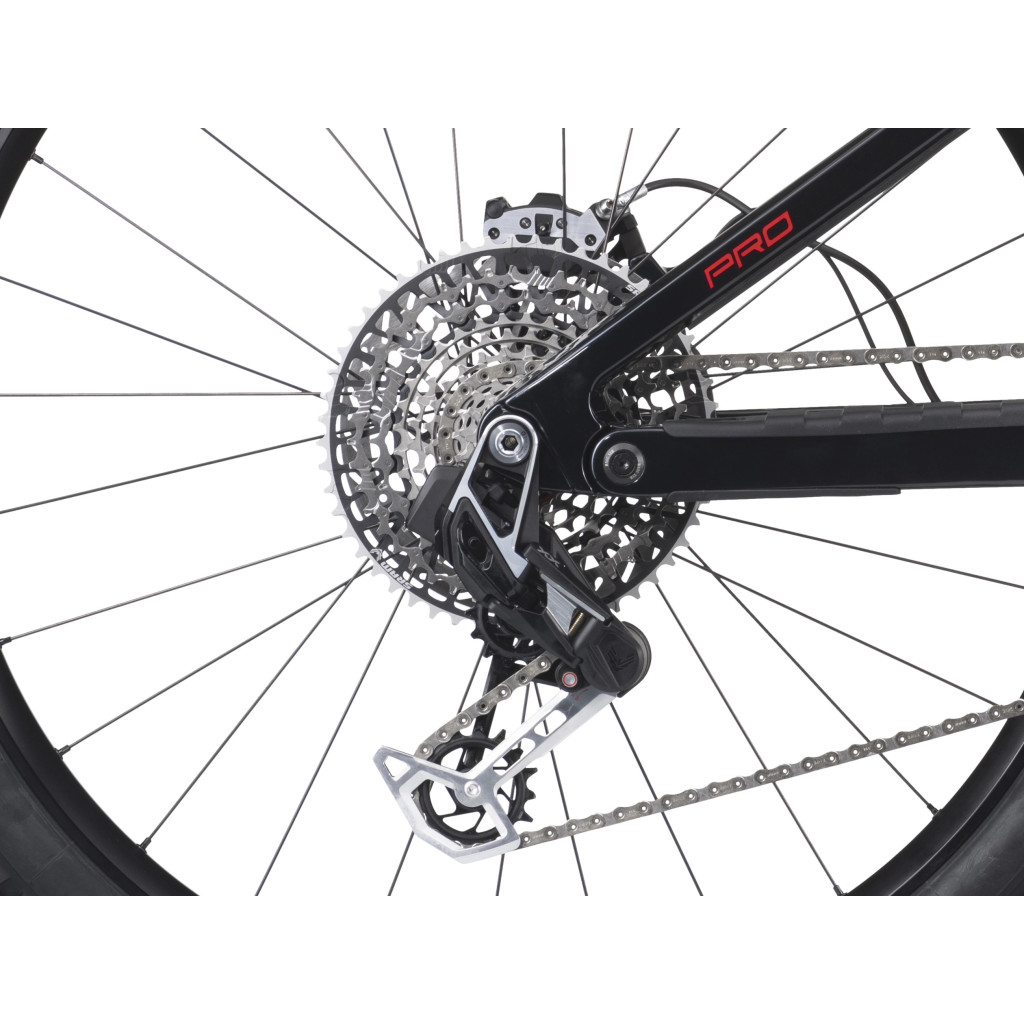 Pro maximální bezpečnost a kontrolu je kolo vybaveno hydraulickými brzdami SRAM Maven Ultimate, které zaručují precizní a spolehlivé brzdění za všech podmínek. Přehazovačka SRAM XX Eagle AXS T-Type s 12 rychlostmi nabízí elektronické řazení, které je rychlé a přesné, což je ideální pro závodní podmínky.