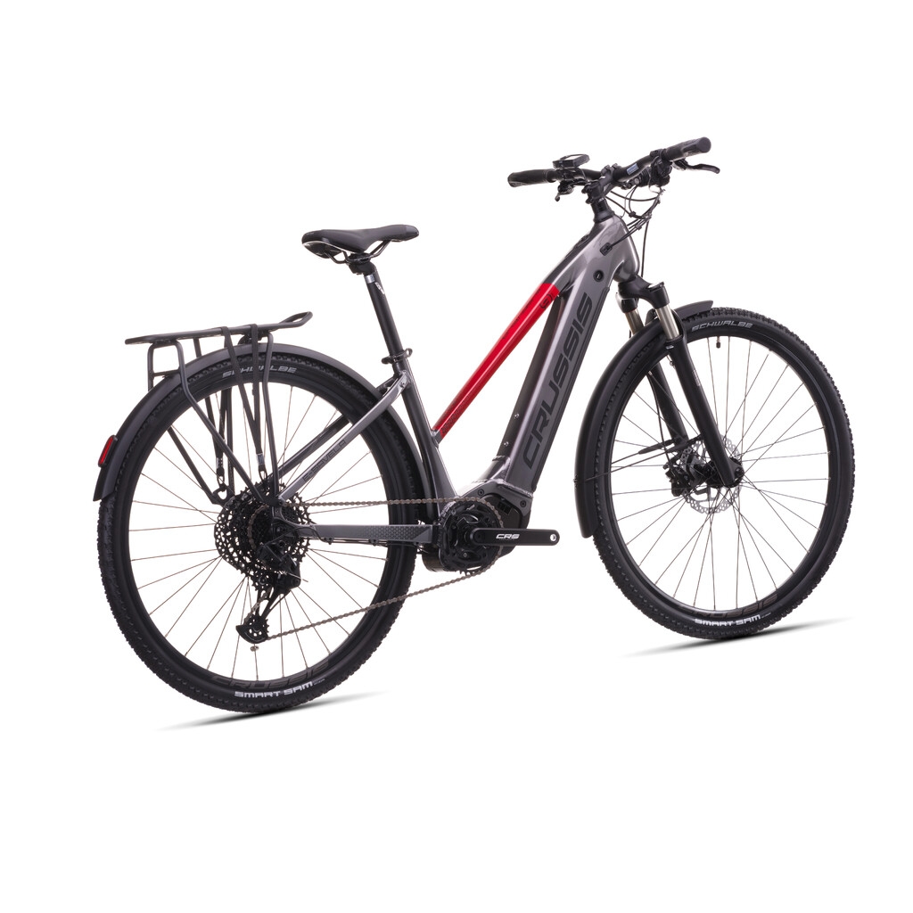 Elegantní integrace baterie do rámu zajišťuje nejen stylový vzhled, ale i nižší těžiště elektrokola, což přispívá ke stabilitě a lepší ovladatelnosti v různorodém terénu. O pohodlí se stará vzduchová vidlice ROCKSHOX FS Paragon Gold RL Solo Air 700C (zdvih 65 mm), která spolehlivě tlumí nerovnosti na cestě.