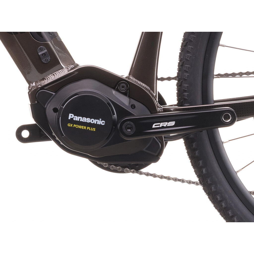 O asistenci při šlapání se stará středový motor PANASONIC GX Power Plus s točivým momentem 75 Nm, který oceníte jak na rovině, tak při jízdě do kopce. Energii dodává baterie LG Li-Ion 518 Wh (14,4 Ah) – ta zvládne poskytnout dojezd až 130 km v závislosti na podmínkách a zvoleném režimu.