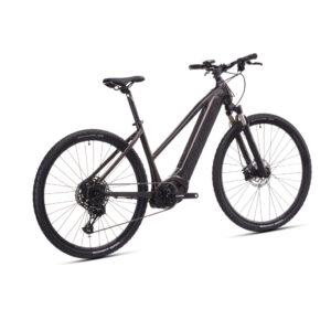 Design kola je zaměřený na praktičnost i styl – elegantní integrace baterie do rámu udržuje nízké těžiště a lepší ovladatelnost. E-bike je osazen komponenty, které garantují spolehlivost a komfort, včetně hydraulických brzd SHIMANO Deore a převodového systému SRAM, který zvládne i náročnější stoupání.
