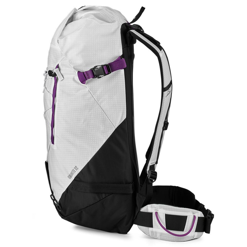 Batoh Granite 32 od značky La Sportiva vám bude perfektním společníkem při vašich lezeckých i turistických dobrodružstvích v horách, během celého roku. Je vyrobený z vysoce odolného materiálu a svým střihem vám umožní pohodlný a všestranný pohyb. Má horní vstup s rolovacím zavíráním na přezku a nástavcem, který můžete využít pro sbalení více věcí nebo pro nesení lana. Navíc má také boční vstup na zip pro rychlé vyhledání konkrétního vybavení. Zádový panel je z tepelně tvarované pěny, s výztuhou pro pohodlné nošení po celý den. Na batoh lze připevnit cepíny, hůlky a síťku na helmu (držák na helmu není součástí batohu). Boční popruhy umožňují také nesení lyží.