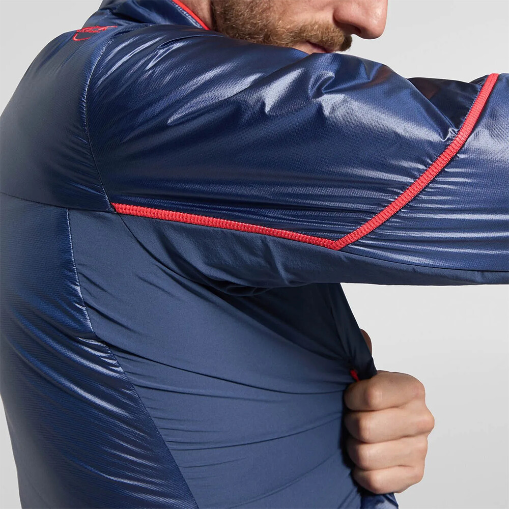 Pánská hybridní bunda La Sportiva Alpine Guide Primaloft Jacket nabízí technické detaily světa alpinismu, ty nejlepší materiály a ultralehké provedení. Oceníte ji nejen s mačkami na nohách a cepínem v ruce, ale také při celoroční turistice jako ultralehkou zateplovací bundu. Má skvělý poměr izolace a termoregulace. Překvapí vás vysokou mechanickou odolností svrchního materiálu.