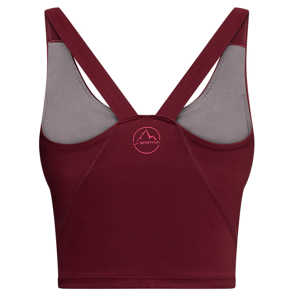 Zkrácená délka topu nepřekáží pod sedákem a perfektně ladí s legínami nebo šortkami. Podprsenka je vhodná na lezení, jógu, běh i volný čas.