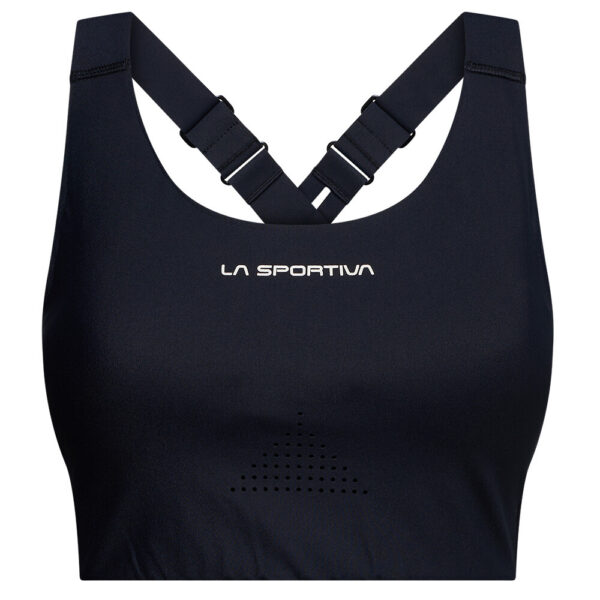 Sportovní podprsenka COSMOSIS BRA Tank od firmy La Sportiva skvěle funguje při pohybu a zároveň dobře vypadá.