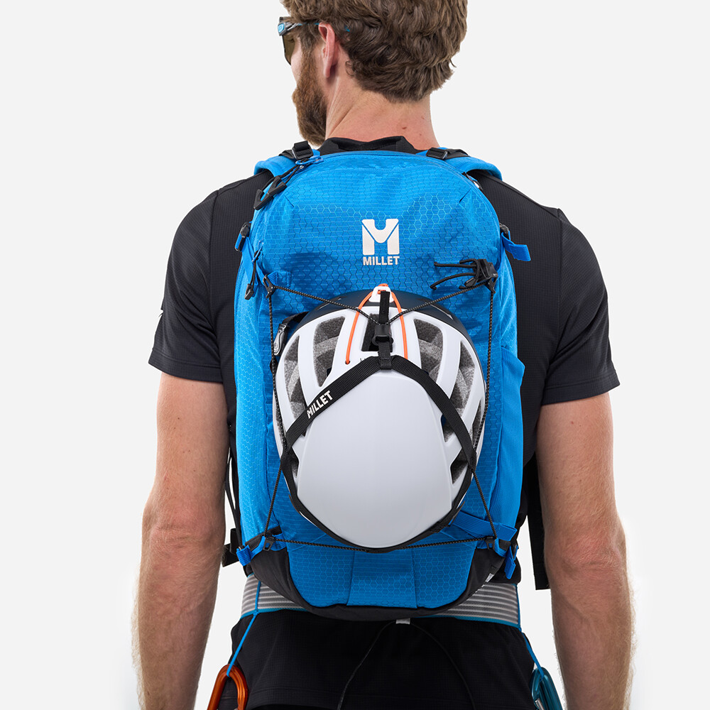 Jednoduchý systém pro připevnění helmy k batohu, v ultralight verzi. Oproti klasickému Helmet Holder od značky Millet, má tato varianta o polovinu nižší hmotnost (pouhých 30 g). Držák snadno připevníte pomocí čtyř háčků a stahovacích gumiček k jakémukoliv batohu, který má na něj v přední části poutka. Velikostně se hodí pro různé typy přileb.