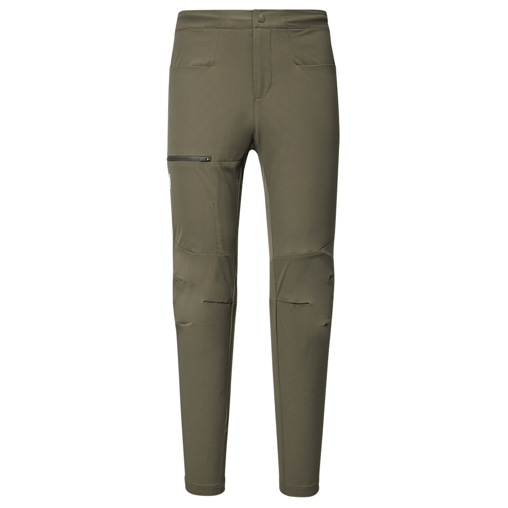 Střih typu carrot se zúženými nohavicemi podporuje plynulý přechod mezi pohyby a neomezuje při technických pasážích. Odolný, vodoodpudivě upravený materiál z částečně recyklovaného polyamidu s příměsí elastanu zajišťuje pružnost i dlouhou životnost. Plochý pas se stahovací šňůrkou je plně kompatibilní s lezeckým úvazkem a kalhoty doplňují čtyři praktické kapsy, včetně zipové kapsy na stehně pro bezpečné uložení drobností.