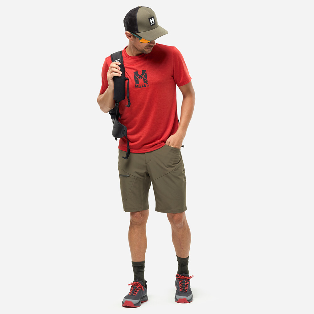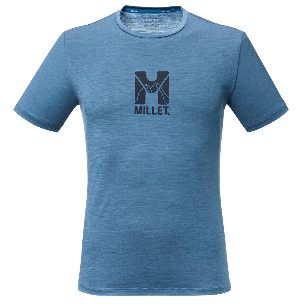 Triko kombinuje Merino vlnu a polyester, což zajišťuje měkkost, pohodlí a dlouhou životnost. Materiál účinně reguluje teplotu těla a odvádí vlhkost, takže tričko udrží příjemný pocit i při celodenním výkonu. Klasický střih s kulatým výstřihem a krátkými rukávy nabízí pohodlné nošení a volnost pohybu. Na hrudi zdobí tričko matný potisk loga Millet doplněný linkami inspirovanými horami, které podtrhují horský charakter a ducha značky.