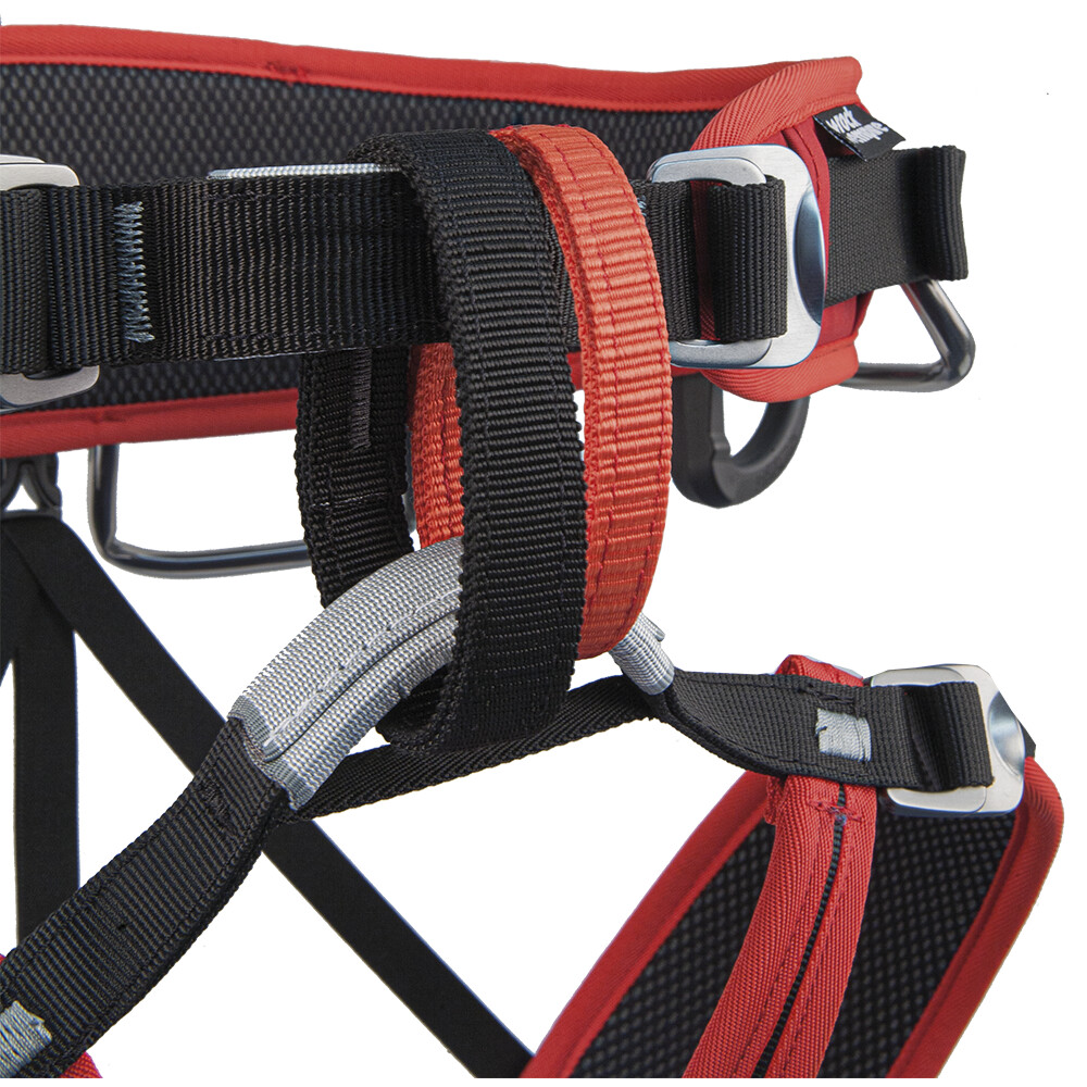 • 7 odolných materiálových poutek umožňuje nést velké množství lezeckého materiálu a přehledně jej během výstupu třídit a organizovat